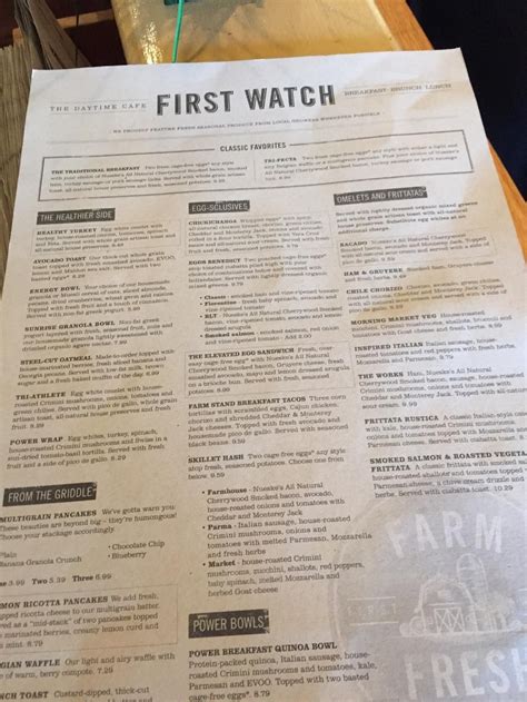 Sandwiches include the monterey club, ham & gruyere melt, market veggie, and roast beef havarti; A healthy parfait consuming or granola, low fat yogurt fresh fruit and nuts served with a baked muffin of the day. First watch is the brunch and breakfast restaurant chain that's sweeping the nation — literally.